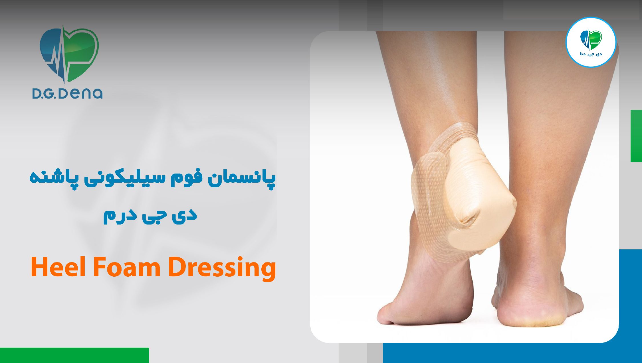 پانسمان پاشنه دی جی درم، یک محصول ویژه برای درمان زخمهای پاشنه پا یا آرنج میباشد. این پانسمان میتواند تمام ترشحات زخم را جذب نموده و شرایط مطلوبی برای بهبودی زخم فراهم نماید. استریل و ضدآب بودن، امکان استفاده برای مدت زمان طولانی، چسبندگی فوق العاده، عدم نیاز به نگهدارنده ثانویه، عدم وجود تروما و درد به هنگام جداسازی آن از روی پوست، از ویژگیهای این پانسمان میباشد.