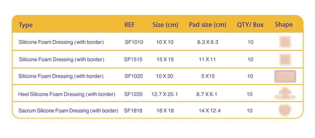 پانسمان فوم سیلیکونی چسب دار دی جی درم در مدلها و اندازههای زیر در دسترس میباشد: