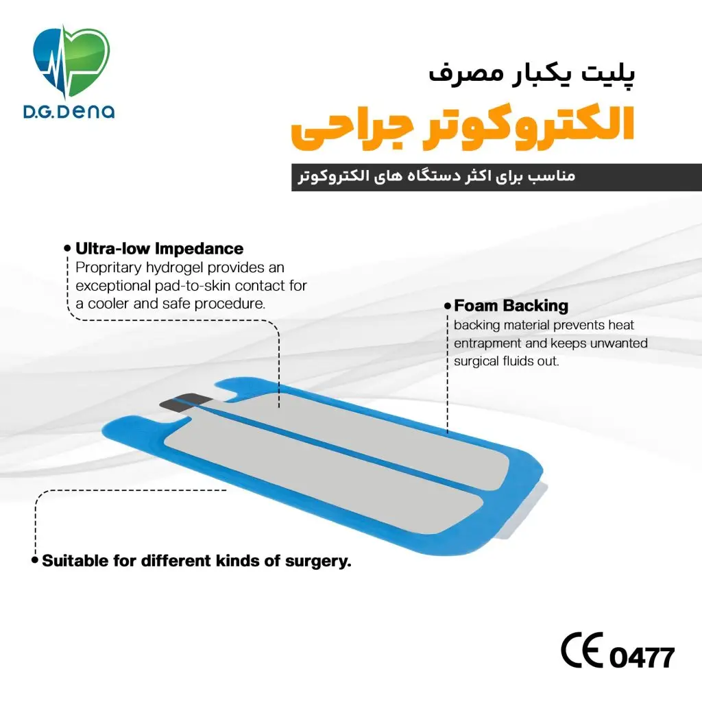 پلیت یکبار مصرف الکتروسرجری (گراندینگ پد، پد الکتروسرجری، پلیت کوتر) یکبار مصرف دنا، جهت خروج جریان الکتریکیِ وارد شده به بدن بیمار در هنگام استفاده از دستگاه الکتروسرجری، استفاده می شود. در هنگام عمل جراحی و استفاده از دستگاه الکتروسرجری، جریان الکتریکی وارد شده به بدن بیمار، باید به صورت ایمن از بدن او خارج شود؛ چرا که در غیر این صورت موجب سوختگی و صدمه به پوست میشود.